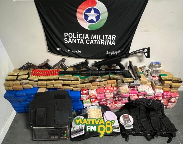Uma operação conjunta entre o 21º Batalhão de Polícia Militar e o Batalhão de Choque, realizada na tarde desta segunda-feira (13), no bairro Ingleses, em Florianópolis, resultou na apreensão de 147 quilos de maconha e um arsenal de armas e munições.