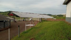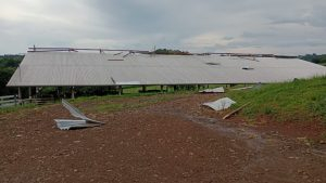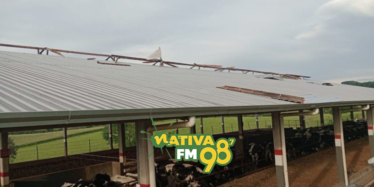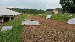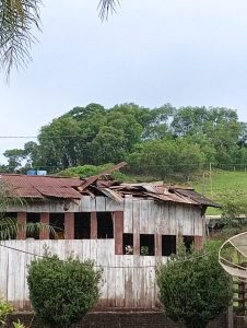 Na propriedade de Sandro Toaldo, o impacto foi devastador. O barracão da Estância São Pedro utilizado para abrigar o gado teve o telhado completamente arrancado.