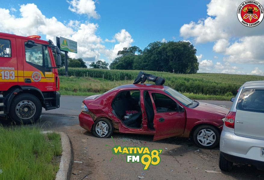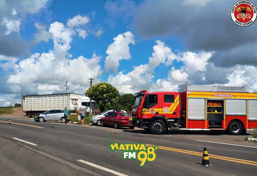 Um acidente de trânsito envolvendo três veículos foi registrado na manhã desta sexta-feira (02), por volta das 9h32, na BR-470, no trevo conhecido como Trevo da Placa, no município de Campos Novos, no Meio-Oeste catarinense.