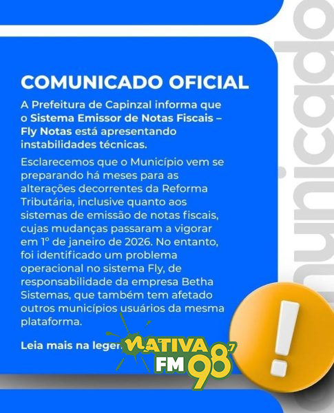 A orientação é que, em caso de dúvidas ou dificuldades, os contribuintes entrem em contato diretamente com o setor de tributos da Prefeitura de Capinzal, que segue acompanhando o processo de adaptação e trabalhando para a estabilização completa do sistema.