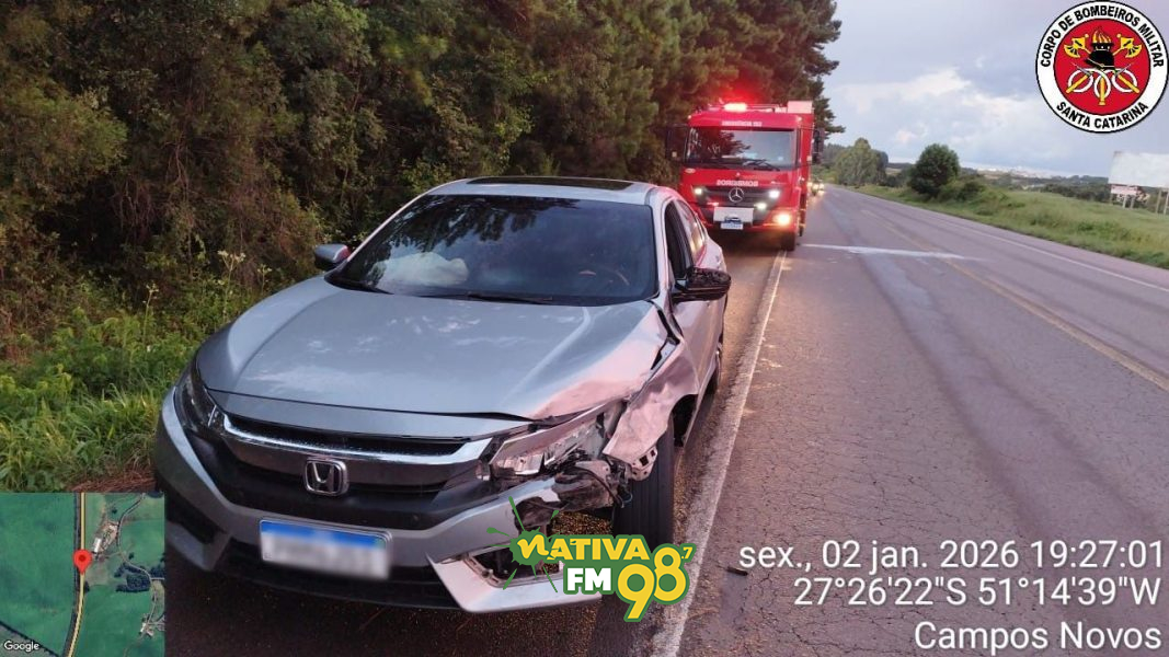 Na noite de sexta-feira (02), por volta das 19h07min, o Corpo de Bombeiros Militar, de Campos Novos, atendeu a uma ocorrência de acidente de trânsito com lesões corporais na BR-470, nas proximidades do trevo do Ibicuí, no município de Campos Novos.