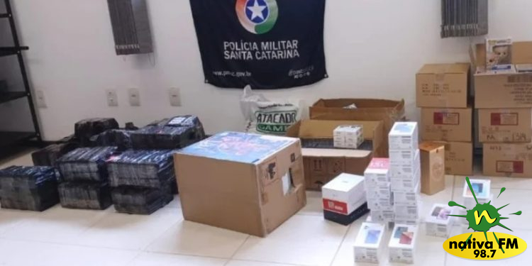 A Polícia Militar Rodoviária (PMRv), juntamente com a Receita Federal, apreendeu na manhã deste domingo (25) uma grande quantidade de cigarros eletrônicos e produtos eletrônicos, em Caçador.