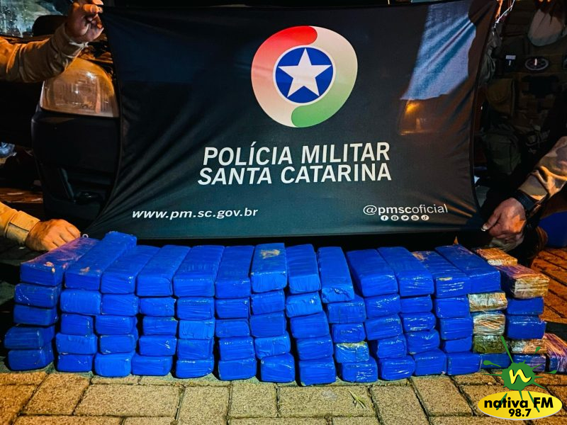 No veículo, a PM encontrou as suspeitas junto de uma criança de 8 anos e um bebê de 10 meses. Em busca veicular, os policiais localizaram 80 tabletes de maconha, sendo 62 inteiros e 18 metades, totalizando 49,8 kg. A droga estava escondida nos forros, painel e para-choque traseiro do Celta.