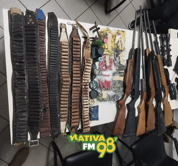 Além disso, foram apreendidos três recipientes contendo chumbos, um recipiente com espoletas, três recipientes com pólvora, sete cintos para portar munições e apetrechos para recarga.