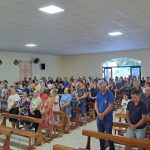 Uma expressiva multidão de fiéis participou neste domingo, dia 02, com a celebração em homenagem à Nossa Senhora dos Navegantes, padroeira do município de Ouro.