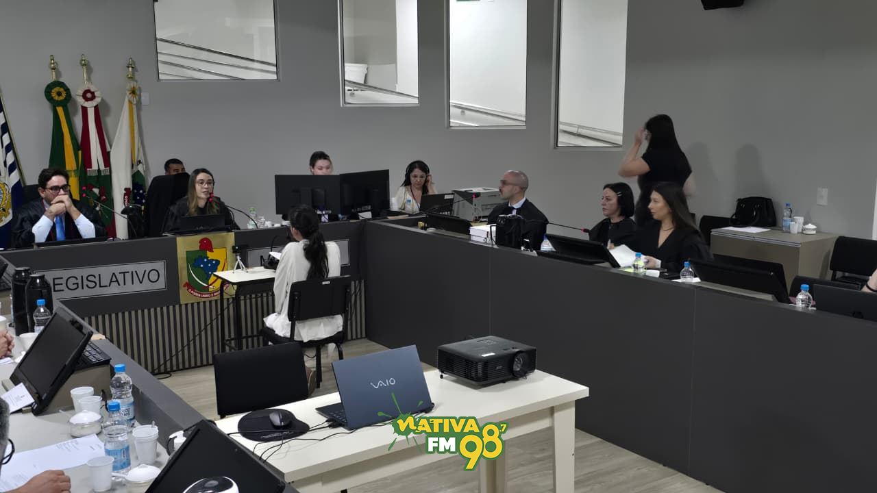 O Tribunal do Júri iniciou, na manhã desta quinta-feira (26), o julgamento dos irmãos Davi Santos Camargo e Dionatan Santos Camargo, acusados de homicídio qualificado pela morte de Adair José Buss. A sessão começou por volta das 9h, nas dependências da Câmara de Vereadores de Capinzal.