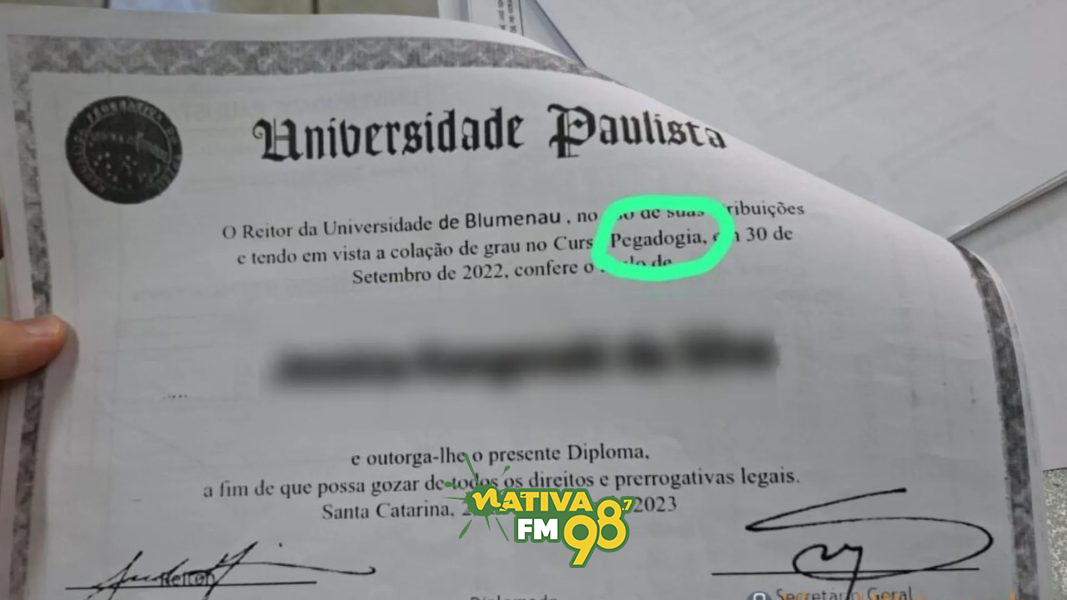 Uma professora da rede municipal de ensino de Herval d’Oeste está sob investigação por apresentar um diploma falso. O documento, obtido com exclusividade pela Rádio Líder, apresenta um erro grave: o nome do curso consta como “PeGaDogia”, em vez de “Pedagogia”.