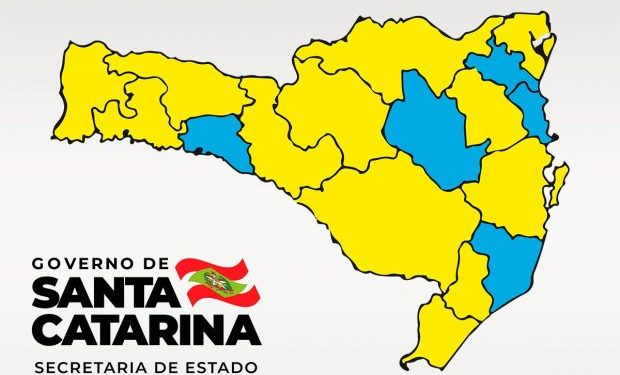 A matriz de risco potencial regionalizado, divulgada neste sábado, 05, aponta cinco regiões classificadas no nível moderado (cor azul): Alto Uruguai Catarinense, Alto Vale do Itajaí, Foz do Rio Itajaí, Laguna e Vale do Itapocu, e 12 regiões foram classificadas como nível alto (cor amarela): Alto Vale do Rio do Peixe, Carbonífera, Extremo Oeste, Extremo Sul Catarinense, Grande Florianópolis, Médio Vale do Itajaí, Meio Oeste, Nordeste, Oeste, Planalto Norte, Serra Catarinense e Xanxerê.