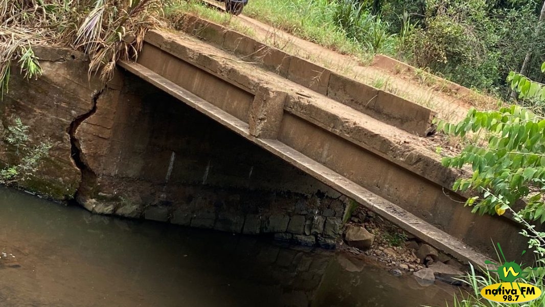 Conforme relato de moradores, a ponte apresentou avarias em uma de suas cabeceiras, e após avaliação da engenharia, por questão de segurança foi feita a opção por limitar/impedir o tráfego de veÃculos sobre a ponte até que seja definida a melhor alternativa para a solução do problema.