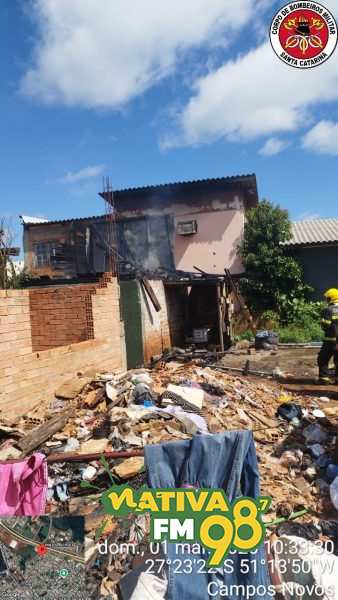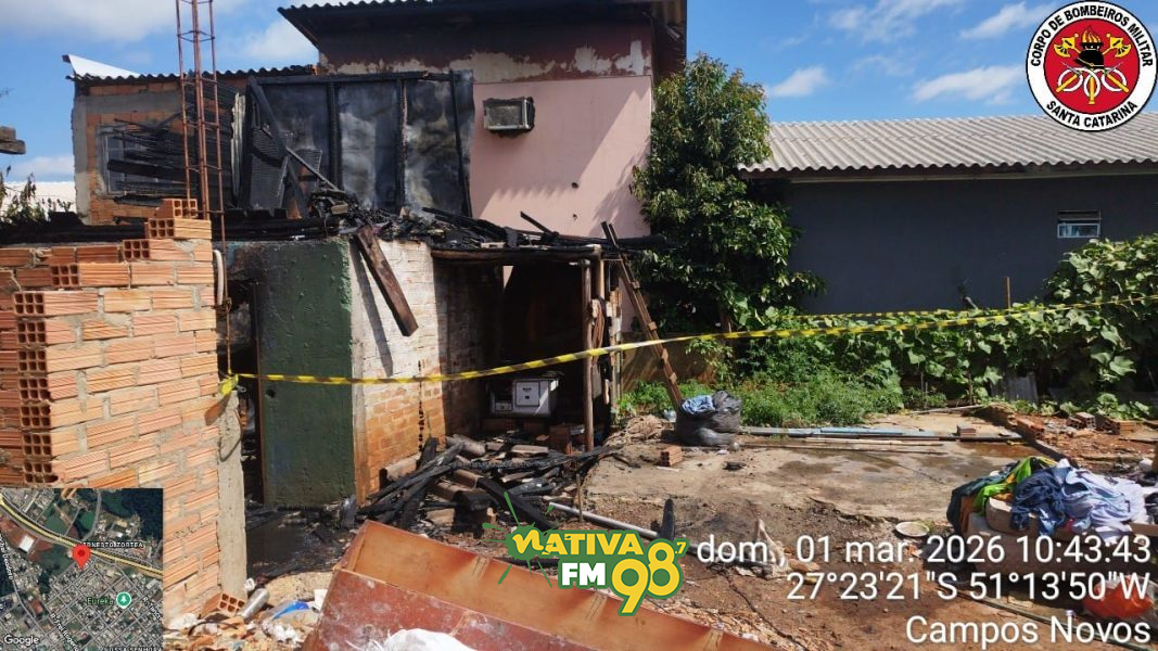 Um incêndio em residência mobilizou o Corpo de Bombeiros na manhã deste domingo (1º) em Campos Novos.