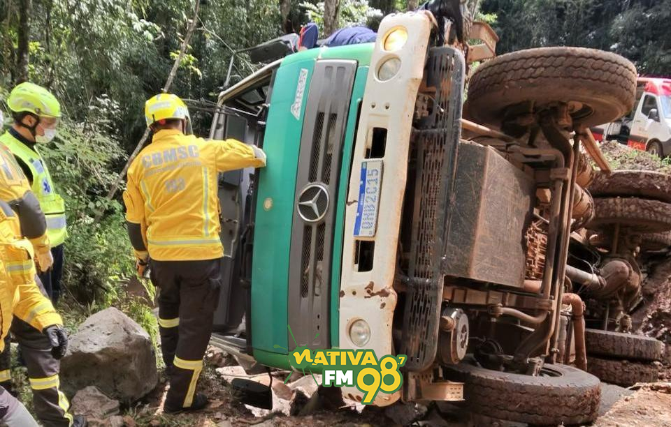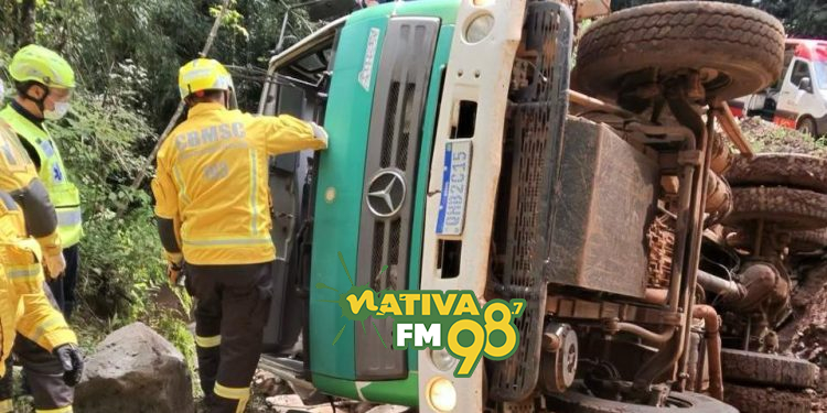 Segundo as equipes de resgate, o caminhão caçamba tombou sobre uma ponte em uma área de difícil acesso. O motorista ficou preso às ferragens dentro da cabine e precisou ser retirado com a ajuda das equipes de emergência.