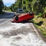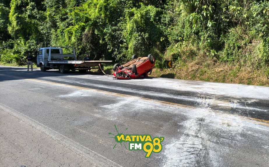 No local, os socorristas constataram que um VW/Gol havia saído da pista e capotado sobre a rodovia. Conforme informações apuradas, o motorista, de 26 anos, estava sozinho no veículo e seguia no sentido Erval Velho quando perdeu o controle da direção. O carro saiu da pista, colidiu contra pedras às margens da rodovia e acabou capotando.
