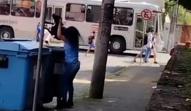 Uma mulher foi flagrada jogando um cachorro no lixo, na tarde desta quinta-feira, dia 28, em Blumenau, no Vale do ItajaÃ.