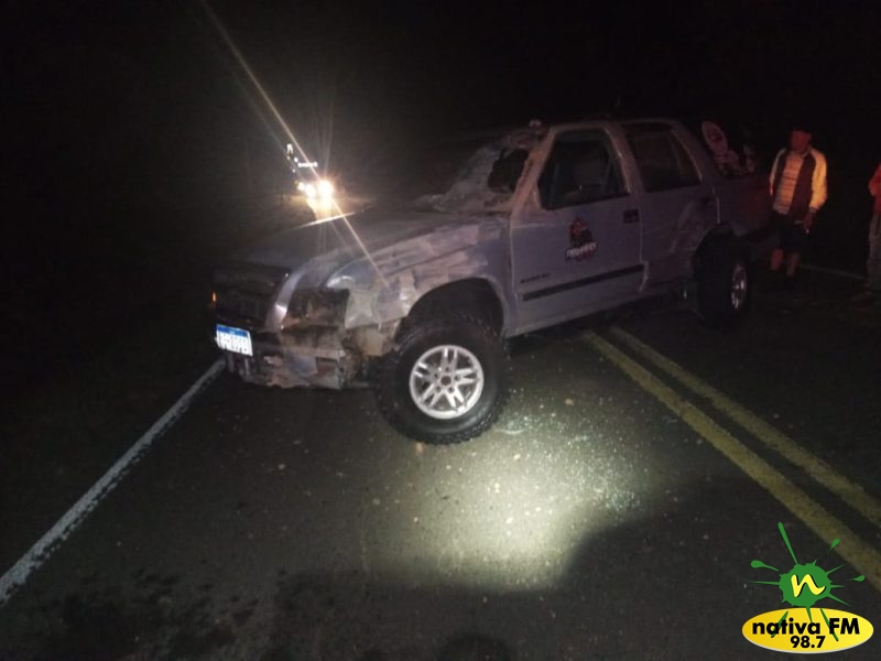 O segundo veÃculo, uma Blazer, placas Mercosul, conduzido por um homem, de 34 anos, sofreu escoriações na cabeça, face e na mão esquerda. Ele foi atendido pelos socorristas, porém preferiu permanecer no local. No veÃculo estavam os passageiros, uma mulher, de 28 anos, a qual nada sofreu, porém encontrava-se abalada emocionalmente, e os menores, um de 4 anos, que apresentava ferimento na região frontal da cabeça e um, de 1 ano e 4 meses, que não apresentava nenhum ferimento aparente, sendo ambos conduzidos ao hospital para avaliação médica.