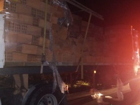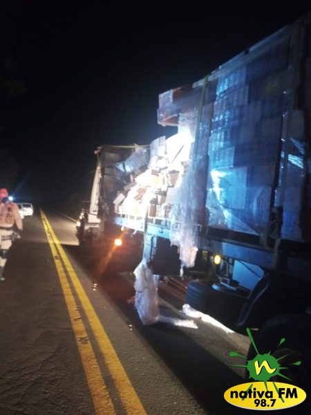 No local, foi verificado que tratava-se de uma Carreta Scania, cavalo e carreta placas de Videira, conduzido por um idoso, de 65 anos, o qual nada sofreu e preferiu permanecer no local.