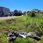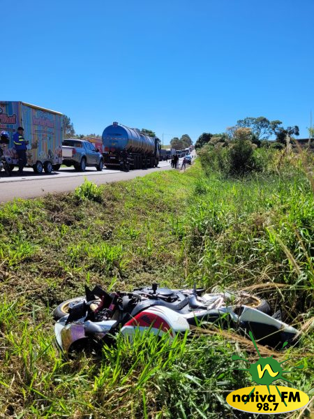 Conforme informações do Corpo de Bombeiros, um homem de iniciais C.A.R.M, 49 anos, condutor da motocicleta Honda, placa de Chapecó, encontrado em decúbito lateral direito, sob a via, apresentando múltiplas fraturas, traumatismo craniano com exposição de massa encefálica e ausência total de sinais vitais.