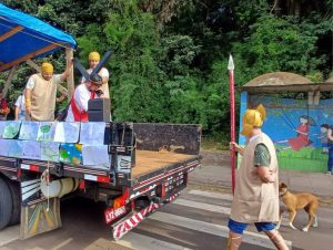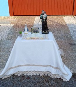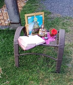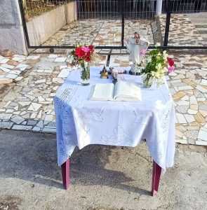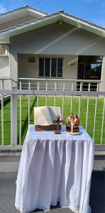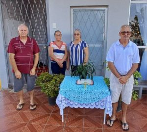 Durante o trajeto, moradores prepararam capitéis decorados com símbolos religiosos. Os espaços foram montados em frente às casas e incluíam bíblias, velas, crucifixos, imagens de santos e outros elementos que demonstravam a devoção das famílias.