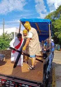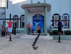 A programação religiosa continuou na capela da comunidade com uma celebração da Palavra, que contou com a participação dos fiéis e a adoração da cruz, conforme é tradição na Sexta-feira Santa, dia em que não se celebra missa. A cerimônia reforçou os valores de fé, união e esperança, típicos do período da Semana Santa.
