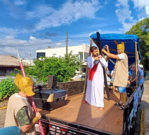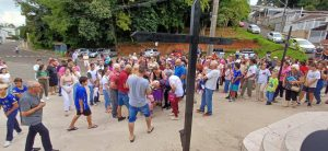 A Sexta-feira Santa (18) foi marcada por um forte momento de fé e devoção na comunidade da Vila 7 de Julho, em Capinzal. Aproximadamente 400 fiéis participaram da tradicional procissão encenada pelas ruas do bairro. A celebração religiosa seguiu na Capela Nossa Senhora do Perpétuo Socorro, presidida pelo diácono Jaime Bertoldo.