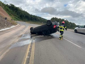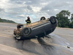 Um acidente de trânsito foi registrado na tarde deste sábado (26) na BR-153, em Irani. A ocorrência envolveu o capotamento de um veículo Fiat Stilo, nas proximidades do km 49 da rodovia.