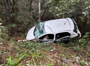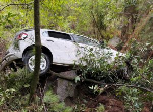 Um automóvel com quatro ocupantes saiu da pista e despencou em uma ribanceira de aproximadamente 20 a 30 metros de altura na manhã deste domingo (12), no Meio-Oeste de Santa Catarina. O acidente ocorreu na BR-282, nas proximidades da pedreira da ervateira, no município de Catanduvas.