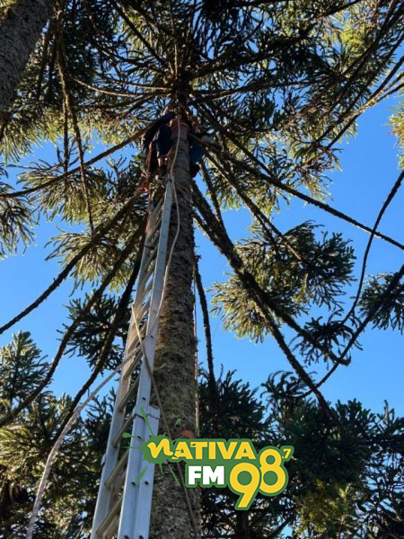 A corporação não recomenda subir na araucária. Mas, se isso ocorrer, o ideal é utilizar equipamentos adequados de segurança, como cinto, capacete e calçado com solado que dificulte o escorregamento. O cuidado deve ser ainda maior em dias de chuva ou com a árvore molhada, condição que eleva muito o risco de queda. Também não se deve subir nos galhos da araucária, já que eles se quebram com facilidade, nem utilizar galhos secos ou podres para amarração de cordas.