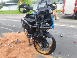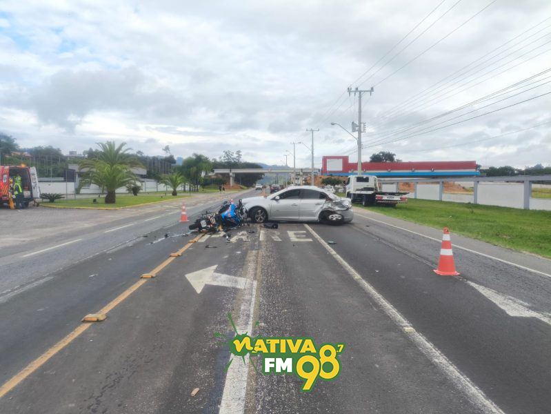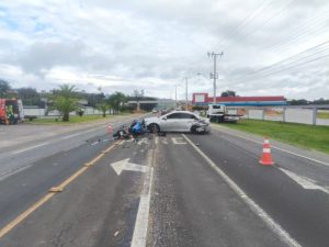 De acordo com a polícia, o acidente envolveu um automóvel Chevrolet Cruze LT NB e uma motocicleta BMW F850GS, em uma colisão do tipo transversal, no sentido Gravatal–Tubarão. Quando a guarnição chegou ao local, por volta das 8h30, os veículos ainda estavam sobre a pista, nas posições finais após o impacto.