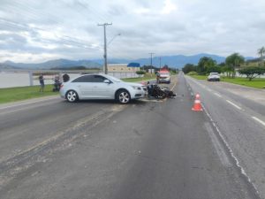 Um grave acidente de trânsito registrado na manhã deste domingo (5), na rodovia SC-370, em Gravatal, no Sul de Santa Catarina, terminou com a morte de um motociclista. A colisão aconteceu por volta das 8h15, no km 157,850 da via, e mobilizou equipes da Polícia Militar Rodoviária (PMRv), do Corpo de Bombeiros e do Serviço de Atendimento Móvel de Urgência (SAMU).