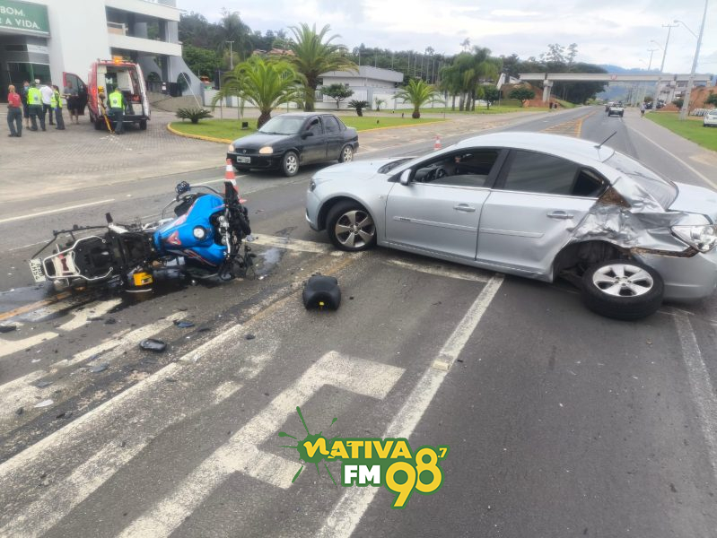 O carro foi retirado do local pela seguradora, enquanto a motocicleta foi removida ao pátio conveniado por não haver responsável no local.