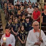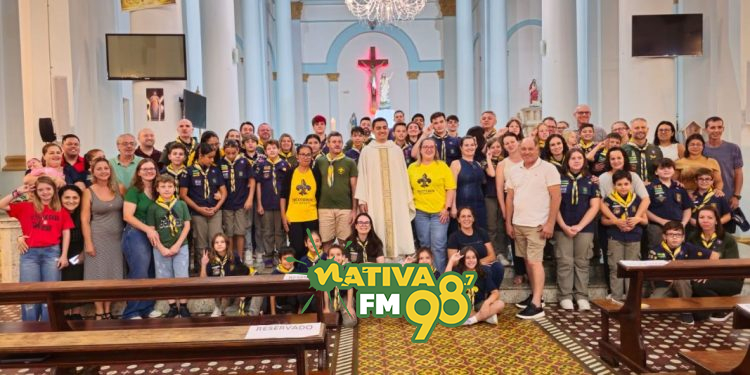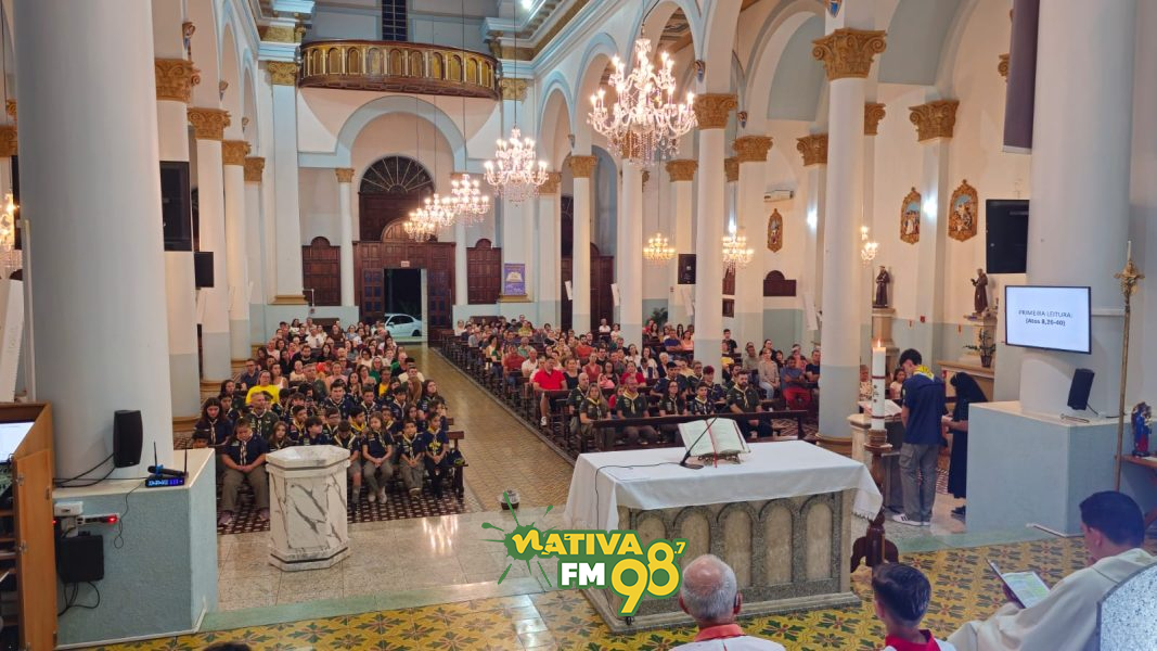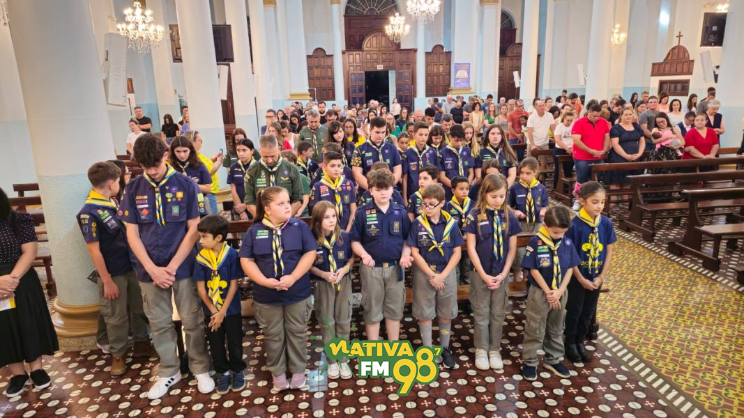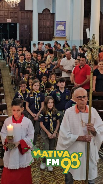 Realizada no período da noite, a partir das 19h30min, na Igreja Matriz, a missa reuniu integrantes dos diferentes ramos do grupo. Jovens e chefes escoteiros participaram ativamente da liturgia, reforçando valores como fé, solidariedade e compromisso com a comunidade, princípios que fazem parte do movimento escoteiro.