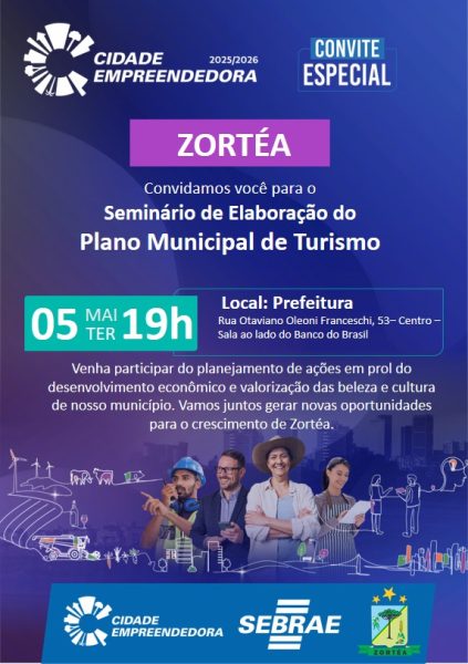 A iniciativa integra o programa Cidade Empreendedora 2025/2026 e conta com o apoio do Sebrae, buscando envolver a comunidade no planejamento de ações voltadas ao fortalecimento do turismo local.