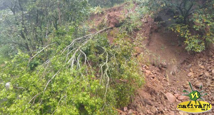 Um deslizamento de terra na SC-390 em Peritiba deixou o trânsito em meia pista na tarde deste domingo, dia 29.