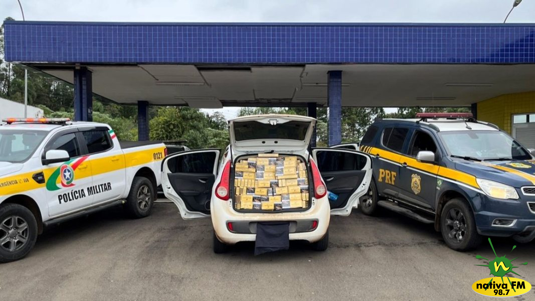 A mercadoria estava em automóvel placas de Caçador/SC. Os cigarros ocupavam todo o porta-malas, banco traseiro e banco do passageiro, sobrando espaço somente para o condutor. No carro também foi encontrado um rádio comunicador, provavelmente para troca de informações com outros envolvidos no crime.