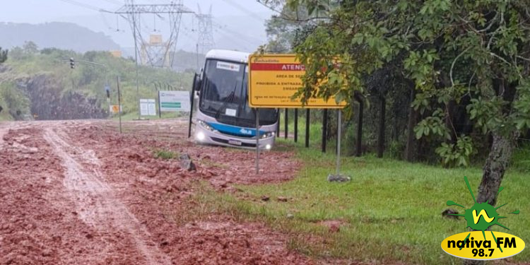 Um ônibus, que realiza o transporte de trabalhadores da BRF Capinzal, para Machadinho e Maximiliano de Almeida, saiu da pista por volta das 13h20min, desta quinta-feira dia 02 de maio.