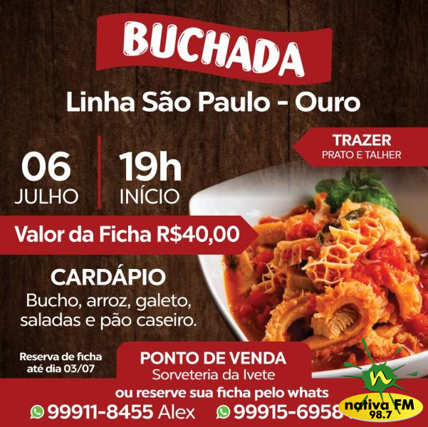 A comunidade de Linha São Paulo, em Ouro, realizará uma buchada no dia 6 de julho, a partir das 19h, oferecendo um cardápio variado.