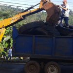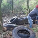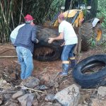 Com o auxílio de uma retroescavadeira e de um caminhão basculante, foram retirados pelo menos 30 pneus grandes. O material foi destinado para a reciclagem no Programa Penso Logo Destino em parceria com o IMA/SC.