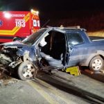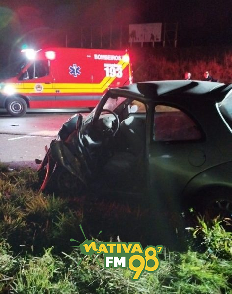 Posteriormente, a equipe de resgate do Corpo de Bombeiros realizou a remoção da porta do Fiat Strada para retirar o motorista, um homem de 49 anos. Ele foi atendido pelas equipes do SAMU de Campos Novos e de Vargem, apresentando prováveis fraturas no tórax.