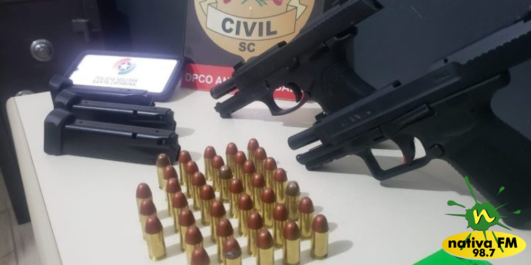 Uma operação conjunta entre a PolÃcia Militar e a PolÃcia Civil foi realizada na Rua Vidal Ramos Junior, no Bairro Arrozal, resultando na prisão do suspeito. Durante a abordagem, foram encontradas duas armas de fogo com o homem: uma pistola Taurus calibre 45, que, segundo investigações, foi roubada em Florianópolis, e uma pistola calibre 9 mm de origem paraguaia. Além disso, foram apreendidas 38 munições calibre 45, dois carregadores com capacidade para 18 e 12 munições de calibre 9 mm, além de um smartphone.