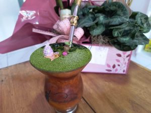 Além disso, a loja disponibiliza garrafas térmicas de alta qualidade, enfeites e produtos de biscuit, todos com designs exclusivos que enriquecem a experiência do chimarrão. Um dos destaques são os shockers, deixando ainda mais elegante e personalizado o tradicional chimarrão.