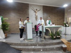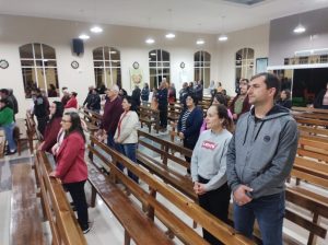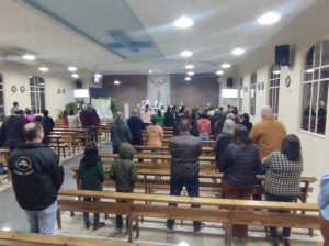 Com o tema “Com São Cristóvão, por caminhos mais seguros”, a 60ª Festa de São Cristóvão em Capinzal teve seu início na noite desta quinta-feira (18) com a primeira noite do Tríduo. A celebração, presidida pelo Diácono Adão de Lima, contou com a participação da liturgia do Loteamento Colina e marcou o tom religioso e festivo que permeará todo o evento. A Rádio Nativa FM transmitiu o momento de fé dos devotos através do Facebook.