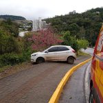 No local, os bombeiros encontraram um Ford Ka parado sobre a calçada e na beira de uma ribanceira. O veículo era conduzido por uma mulher de 23 anos, que ocupava a posição de motorista. Ela estava consciente, orientada e apresentava sinais de nervosismo. A motorista relatou não estar utilizando cinto de segurança e informou que está grávida de cinco meses. Segundo o relato, o carro teria derrapado na curva em razão da pista molhada pela chuva.