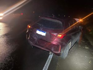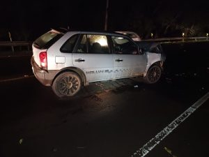 A colisão aconteceu por volta das 18h35, na saída do município em direção a Joaçaba. Quando a guarnição da Polícia Militar chegou ao local, encontrou os três veículos sobre a via: um GM Corsa Super, um Honda City (com placas de Joaçaba) e um VW Gol (com placas de Ouro).