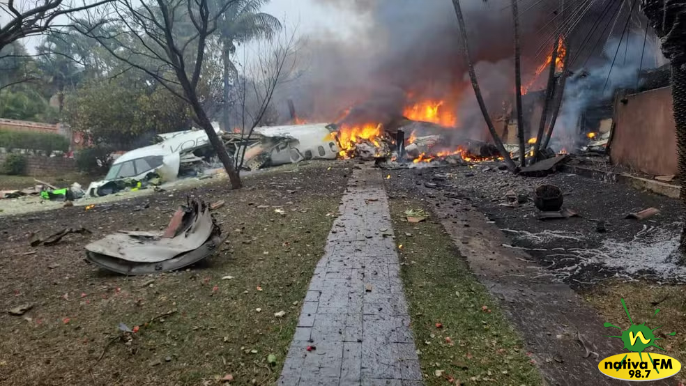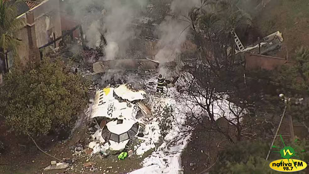 Um avião com 58 passageiros e quatro tripulantes, totalizando 62 pessoas a bordo, caiu em um condomínio no bairro Capela, em Vinhedo (SP), no início da tarde desta sexta-feira (9).