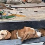 No veículo, foram encontrados dez cães sem raça definida na caçamba.