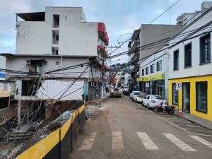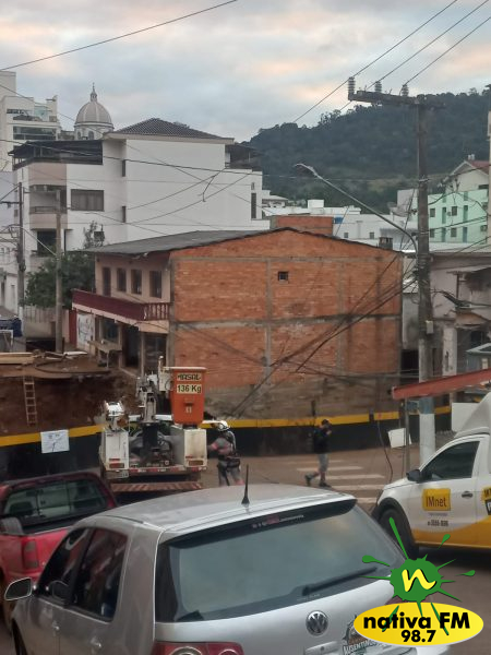 Poste cai e afeta serviços de energia elétrica, telefonia e internet no centro de Capinzal