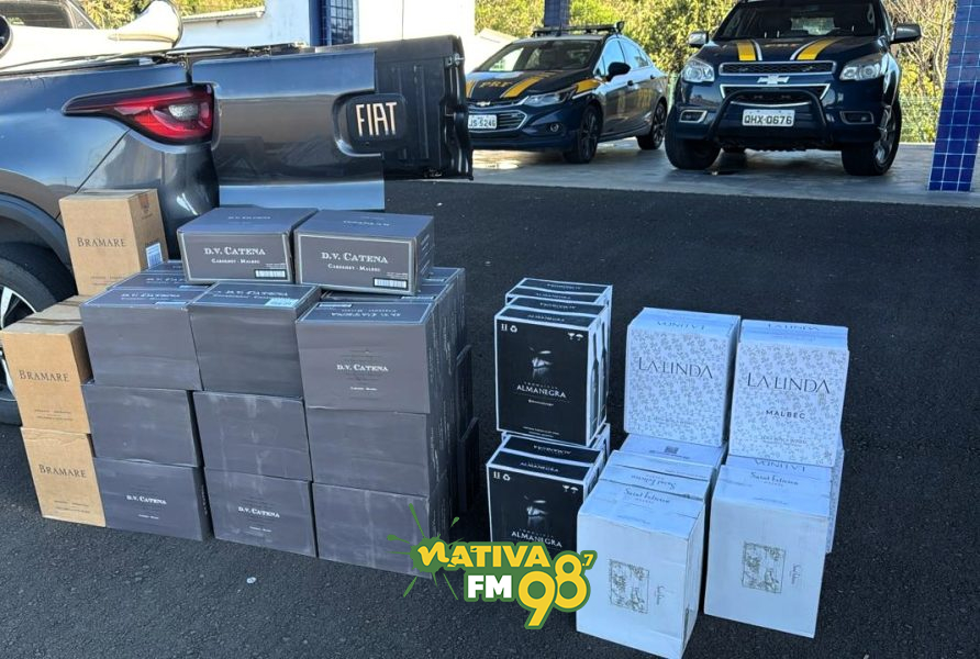 Policiais rodoviários federais localizaram 300 garrafas de vinho importadas irregularmente da Argentina, na tarde de segunda-feira (11), em uma fiscalização na BR-153, em Água Doce. Os agentes pararam uma Picape Fiat/Toro, de locadora, com placas de Belo Horizonte (MG), e encontraram 50 caixas do produto escondidas debaixo da lona no compartimento de carga.