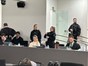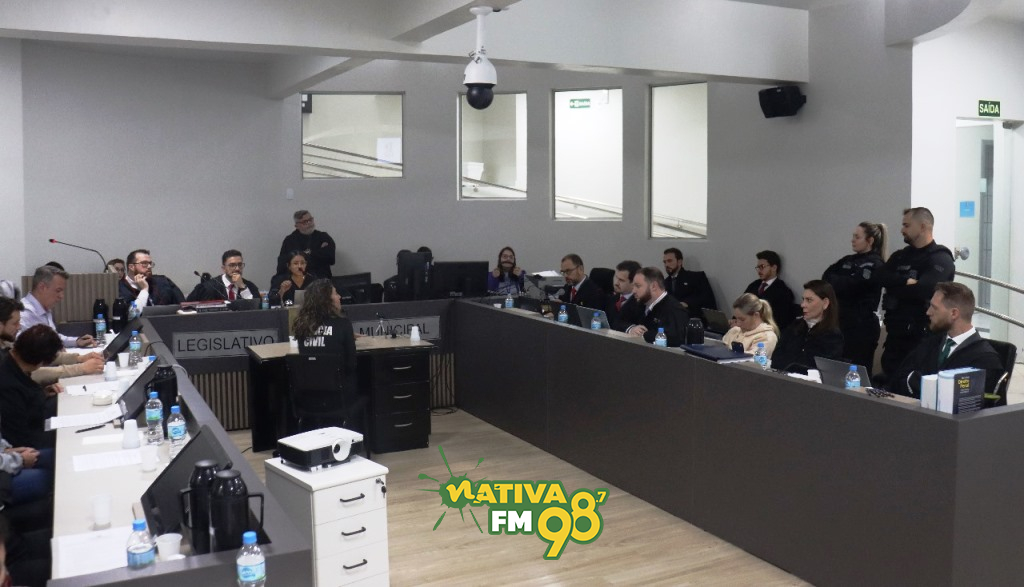 Julgamento de Claudia Tavares iniciou por volta das 10 horas desta quinta-feira, dia 28, na Câmara de Vereadores de Capinzal