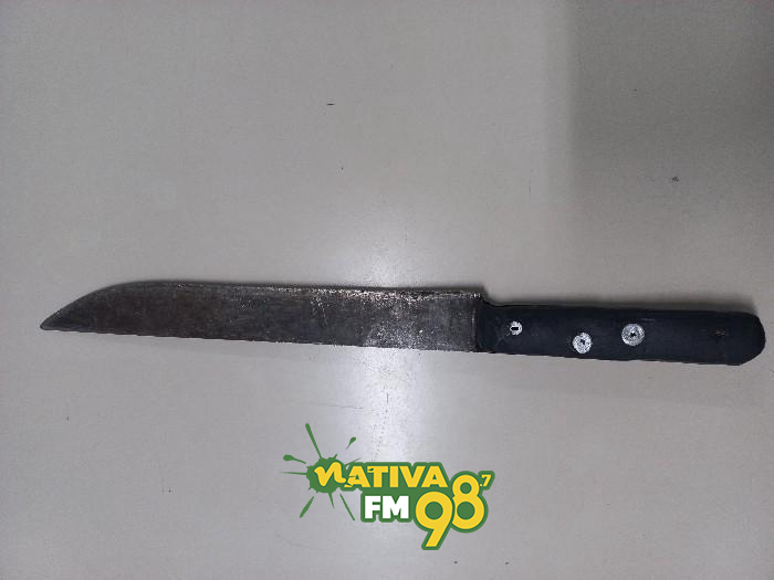 Ao chegar ao local, as guarnições abordaram um homem de 21 anos, que, segundo informações, teria ameaçado sua companheira utilizando um facão com lâmina de aproximadamente 25 centímetros. A vítima relatou que as ameaças incluíam afirmações de que seria morta, perturbada em seu local de trabalho e que sua residência seria incendiada. Apesar do clima de tensão, ela não apresentava lesões corporais visíveis no momento da abordagem.