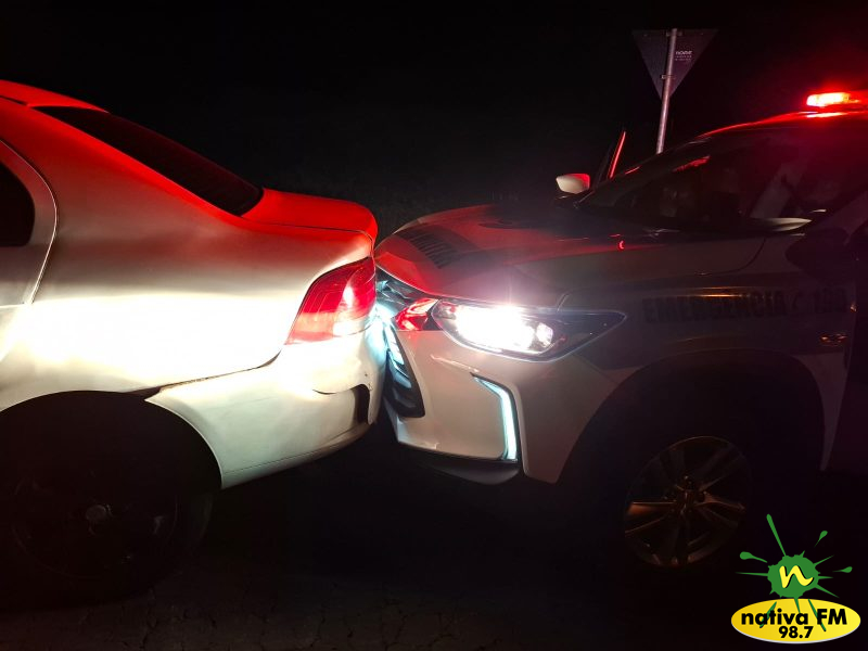 O veículo, um VW Voyage, com placas de Capinzal, foi abordado pela polícia. No momento em que o motorista tentou sair do carro, ele não acionou o freio de mão, fazendo com que o veículo se movimentasse para trás e colidisse com a viatura Chevrolet Tracker da Polícia Militar.