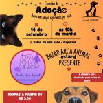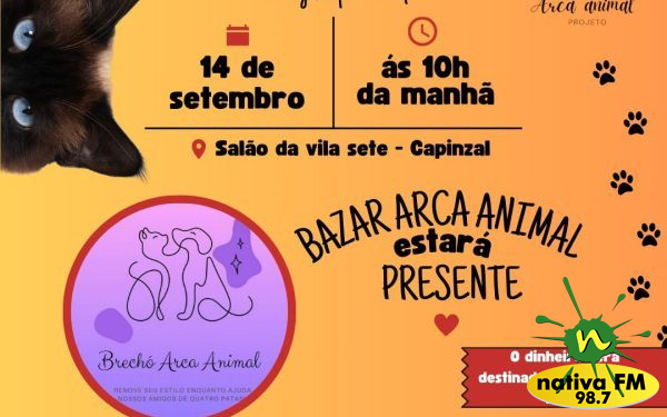 No próximo sábado, 14 de setembro, o Projeto Arca Animal promoverá um evento especial no Salão da Vila Sete, que acontecerá das 10h às 16h. A programação contará com uma feirinha de adoção e um bazar com diversos itens à venda, visando arrecadar fundos para a organização.